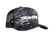 Trucker Cap Camouflage/Logo weiß, runder Schirm