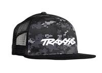 Trucker Cap Camouflage/Logo weiß, flacher Schirm