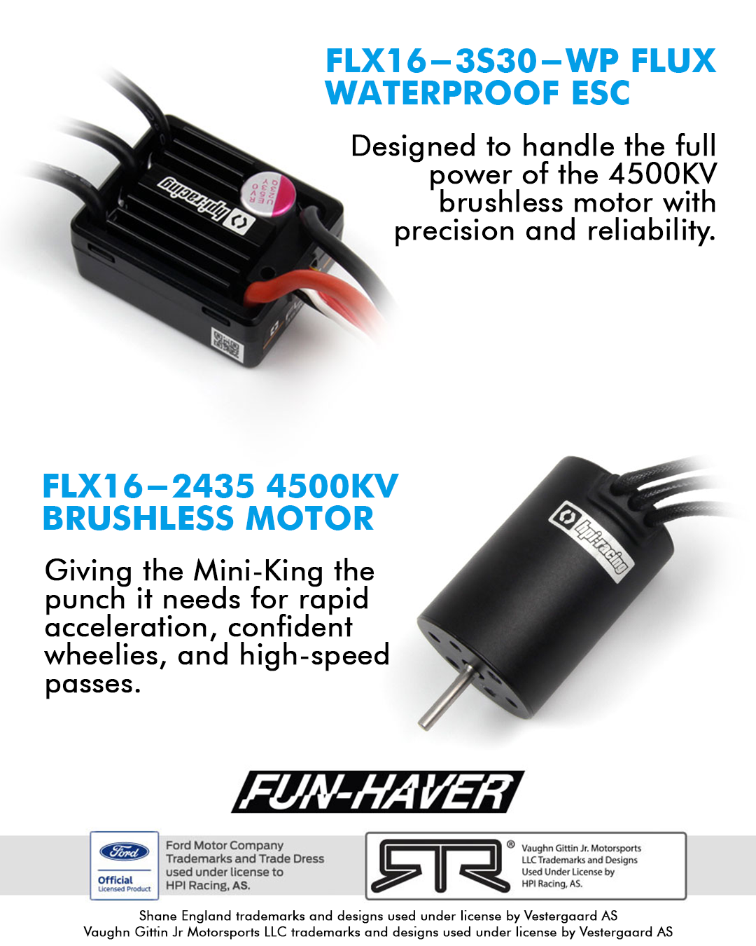 - FLX16-3S30-WP Flux ESC mit XT-30 FLX16-2435-4500KV Brushless Motor.