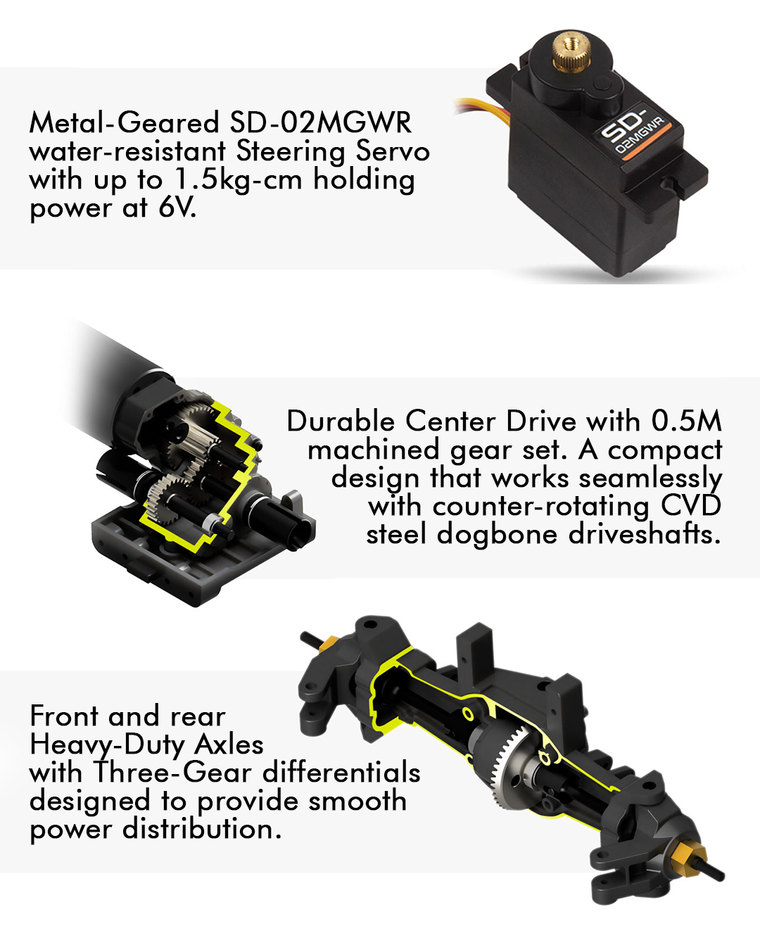 - SD-02MGWR Micro Servo (6,0V/1.5kg/Metal Geared).