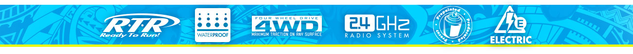 Ein robustes TVP-Verbundchassis, zwei ölgefüllte Dämpfer an allen vier Ecken und massive neue Achsgehäuse mit Drei-Gang-Unterschieden verwandeln diesen Lkw in ein kompaktes Kraftpaket. Ein Single-Speed-Getriebe treibt gegenläufige CVD-Stahl-Mittelwellen für eine reibungslose Kraftübertragung an, während schwere Unterlenker und der offiziell lizenzierte Big Kahuna-Körper die Transformation abschließen.