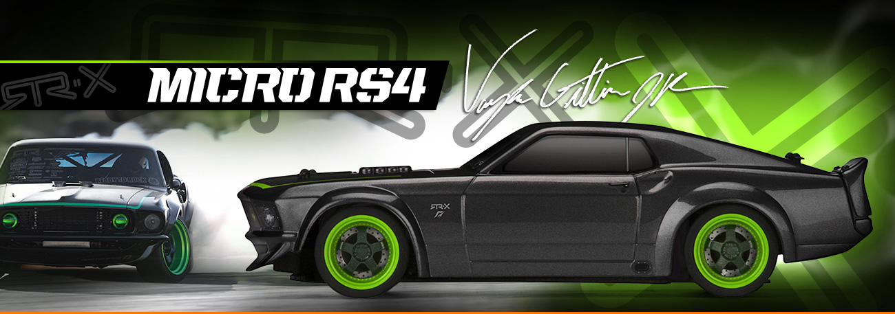 Der HPI Micro RS4 wird angetrieben von einem HPI Motor in 180er Größe und ist ausgestattet mit einem elektronischen Fahrtenregler, einem permanenten Riemen-Allradantrieb und einem wasserdichten Lenkservo. Bereit für jede Menge Fahrspaß auf der Straße - wie mit Vaughn Gittin Jr.'s 1:1 Ford Mustang!