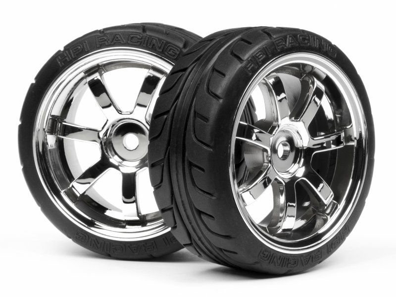 Hol Dir die neuen long-wearing HPI T-Grip Reifen, für Dein Touring oder Straßenwagen. Perfekt für einen einzigartigen und vollendeten Look! Auf offiziel lizensierten Rays 57S-Pro Chromfelgen, es gibt kein einfacheren und schnelleren Weg Deinem Auto Stil und Kontrolle zu verleihen! 2St. enthalten.